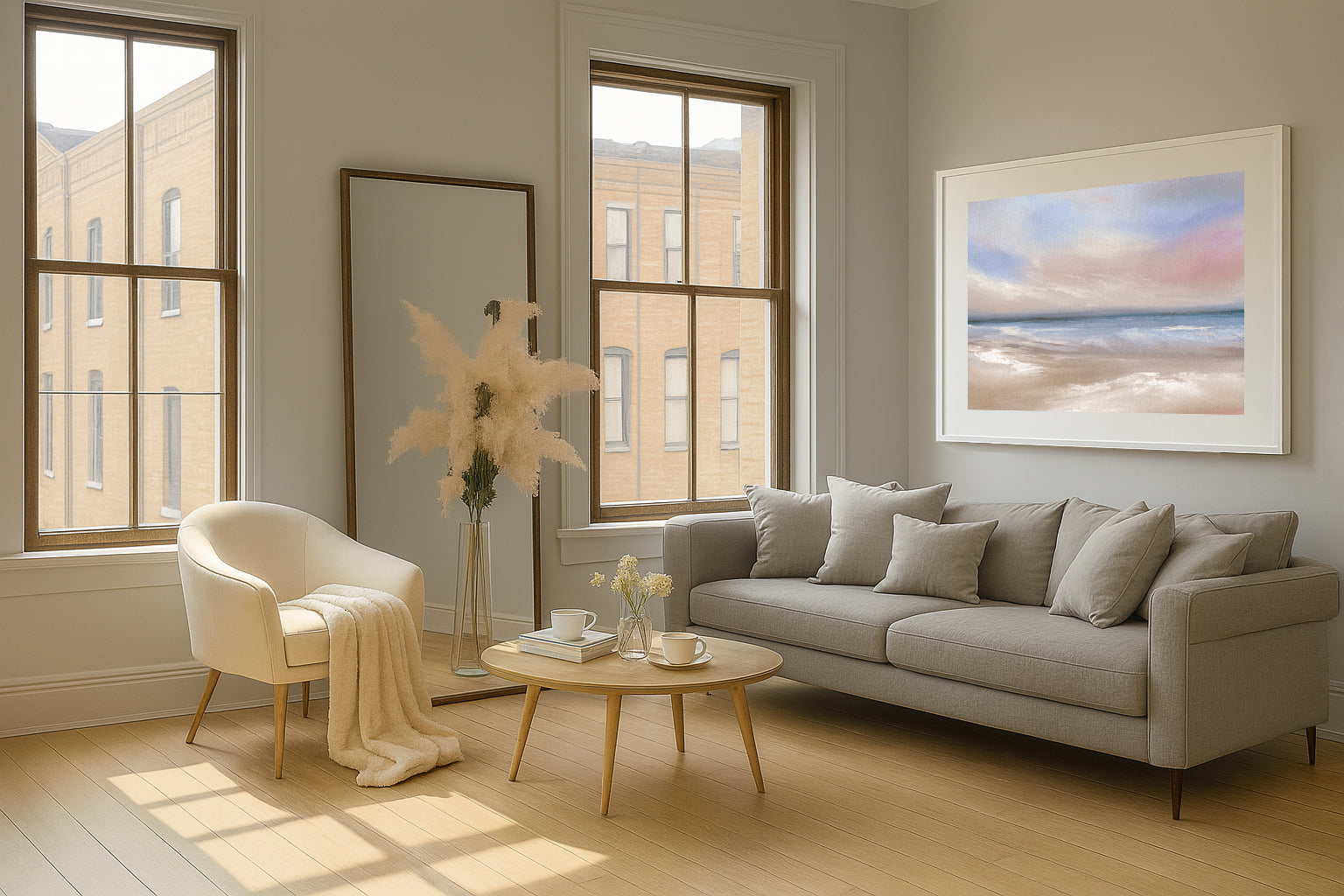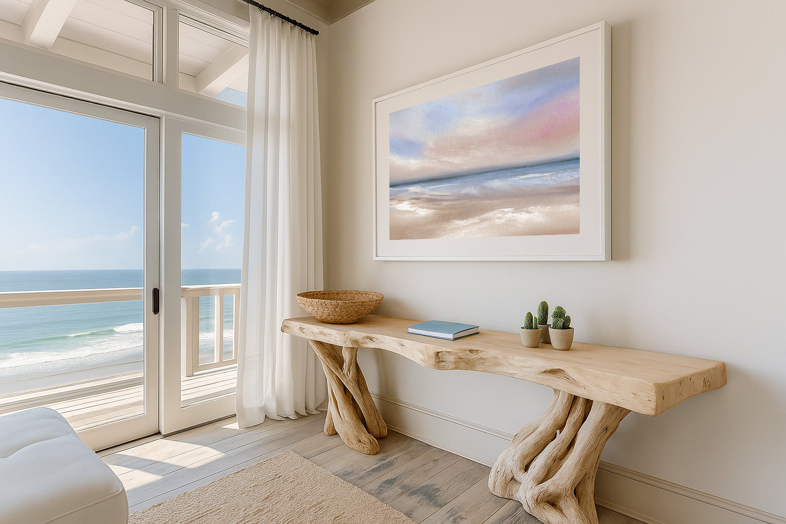 Desires is a soft and euphoric abstract seascape born from a moment of pure joy. Created in a spirit of indulgence and emotional uplift, this piece celebrates the lightness we sometimes forget to honour—the delight of colour, movement, and the sea’s gentle rhythm. It’s designed to bring warmth, celebration, and soul into any space.