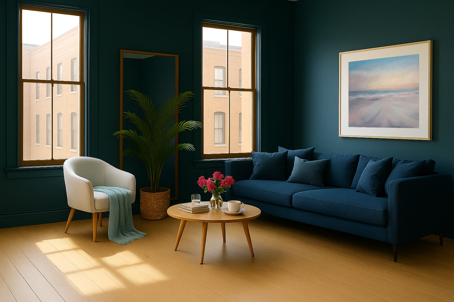 The Art of Calm is a light-filled abstract seascape created from a deep desire to bring peace into the home. For me, home is a sanctuary—a place of safety, softness, and emotional ease. This painting captures that intention, blending the serenity of morning skies with the gentle rhythm of the ocean to create a visual atmosphere of relaxation and renewal.
